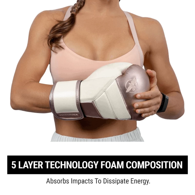 Wat de Hayabusa T3 Rose Gold Bokshandschoenen uniek maakt, is het gebruik van Vylarยฎ, een speciaal ontwikkeld materiaal dat uitmunt in duurzaamheid. Dit maakt de handschoenen bestand tegen de meest intensieve trainingen. De Dual-Xโข sluiting en Fusion Splintingโข technologieรซn zorgen ervoor dat deze handschoenen perfect aansluiten op je handen, waardoor je elke stoot met vertrouwen kunt geven. De vierlaagse schuimstructuur verspreidt de impact, wat zorgt voor een uitstekende veiligheid en comfort tijdens je trainingen.